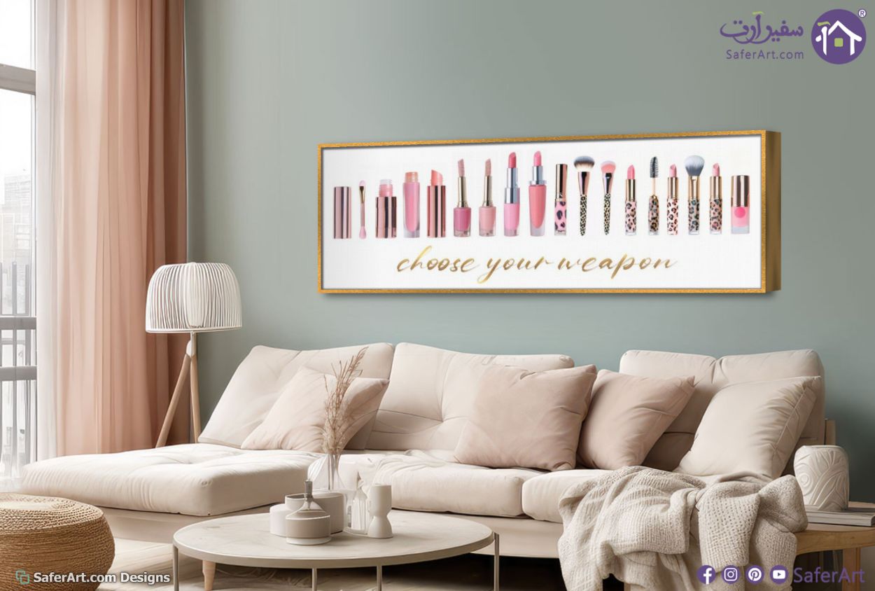 لوحه مودرن للبنات ولعشاق الميكاب لافضل مقتنيات الميكاب المحببه لدى البنات مرسومه بطريقه مودرن على خلفيه بيضاء, متوفر بمقاسات متعددة يمكنك اختيار او تغيير المقاس عند الطلب ,بتصميم مميز لـ تابلوهات مودرن, تابلوهات مودرن , لوحات فنية مودرن موضة – ازياء - بنات, ميك اب - تجميل , التابلوه يغلب عليه الالوان ابيض - اوف وايت, بينك – فوشيا , و مصمم بالشكل التالى 1 قطعه , بالعرض, ببرواز, برواز ذهبى, مستطيل , مناسب لديكور حوائط غرفة بنات , و هو يتميز بالسمات التالية : بسيط و هادئ, ديجيتال آرت, لوحات فنية , متوفر الان فى مصر و يأتى جاهز للتركيب مع دليل التركيب و اكسسوارات التركيب اللازمه