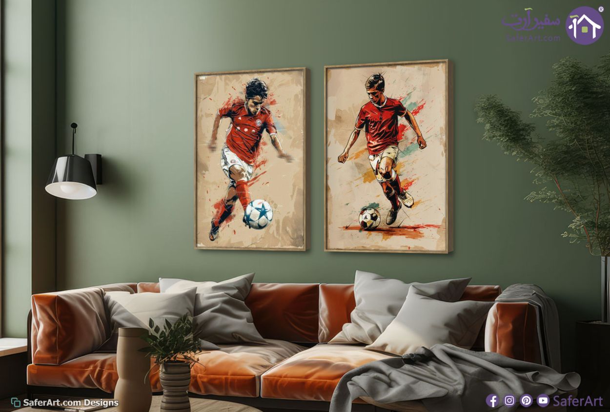 تابلوه حائط مودرن لغرف الشباب ,كره قدم للاعبين رياضين يرتدون الزى الاحمر على خلفيه باللون البيج ,عباره عن قطعتين, متوفر بمقاسات متعددة يمكنك اختيار او تغيير المقاس عند الطلب ,بتصميم مميز لـ تابلوهات مودرن, تابلوهات مودرن , لوحات فنية مودرن رجال, رياضات, هوايات, شخصيات و وجوه , التابلوه يغلب عليه الالوان احمر - نبيتى, بنى - بيج , و مصمم بالشكل التالى 2 قطعه, متعدد القطع ( اى عدد ) , بالعرض, ببرواز, برواز خشبى, مستطيل , مناسب لديكور حوائط غرفة شباب, مكاتب – شركات - اعمال , و هو يتميز بالسمات التالية : الوان زيتية - اكريليك, لوحات فنية, مودرن , متوفر الان فى مصر و يأتى جاهز للتركيب مع دليل التركيب و اكسسوارات التركيب اللازمه