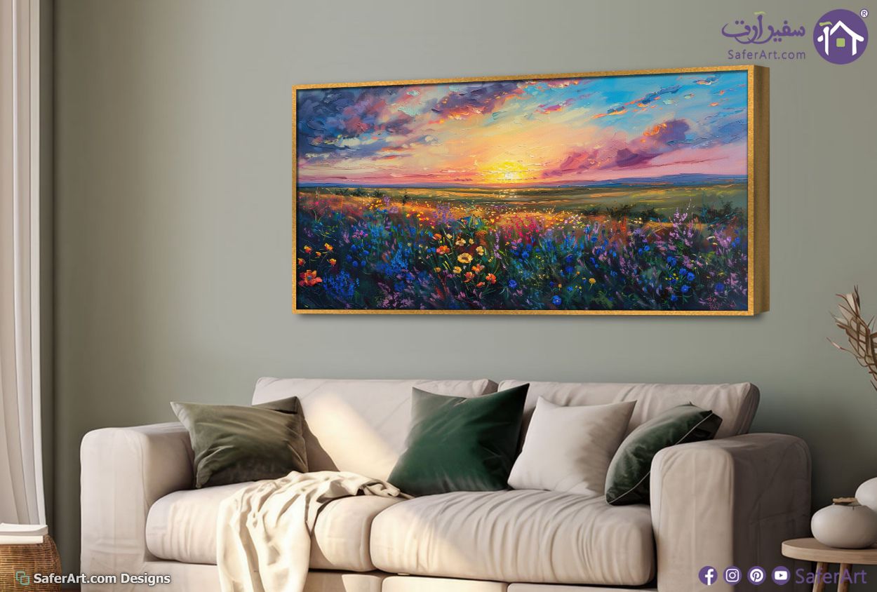 لوحات فنية لغروب الشمس الساحر وحقول الزهور